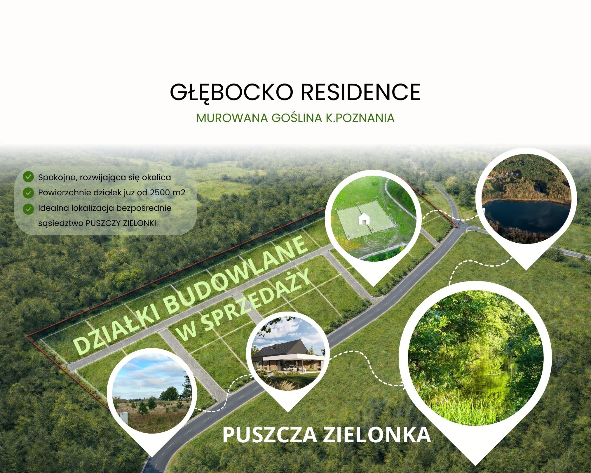 OFERTA SPRZEDAŻY 38 działek budowlanych jednorodzinnych rezydencjonalnych w Głębocku, tuż obok Murowanej Gośliny k. POZNANIA.